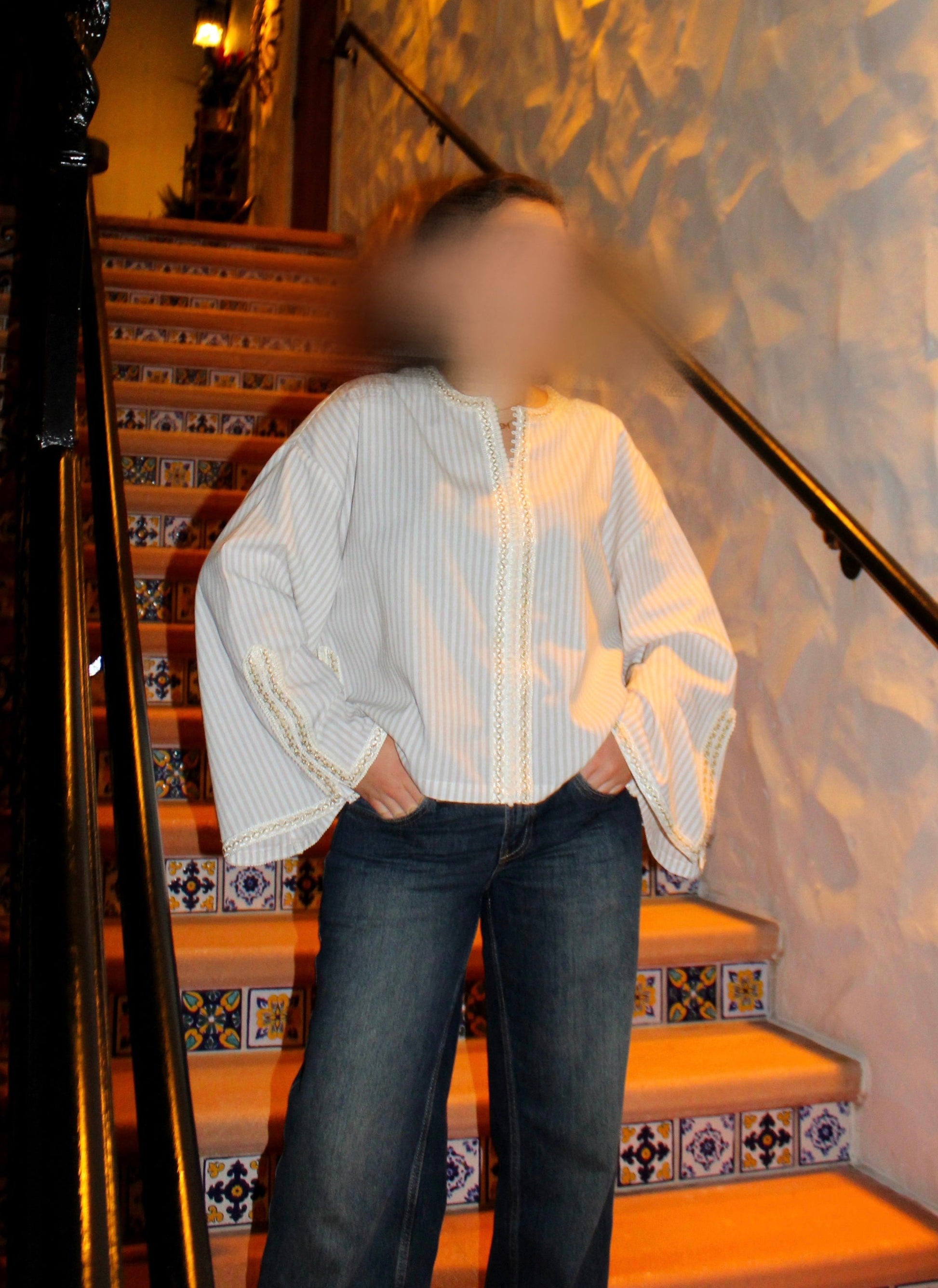 Inspired by the Moroccan women’s jabador, our Coastal Stripe piece blends tradition with modern design. Part of the Sand & Sea Collection. The beige and white stripes were inspired by Morocco’s sandy beaches and the calm look of the coast 🐚
