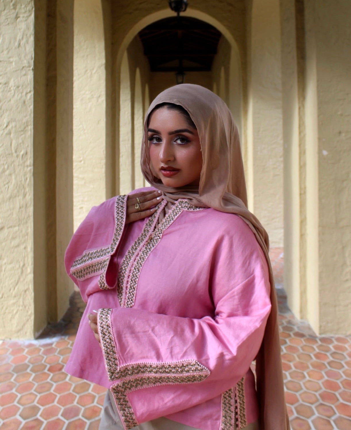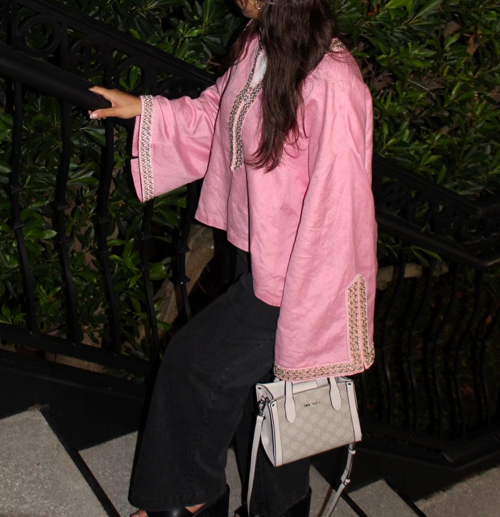 Inspired by the Moroccan women’s jabador, our Dusty Pink piece blends tradition with modern design. Part of the Sand & Sea Collection. The soft pink color was inspired by the warm tones of Moroccan sunsets and deserts 🌸